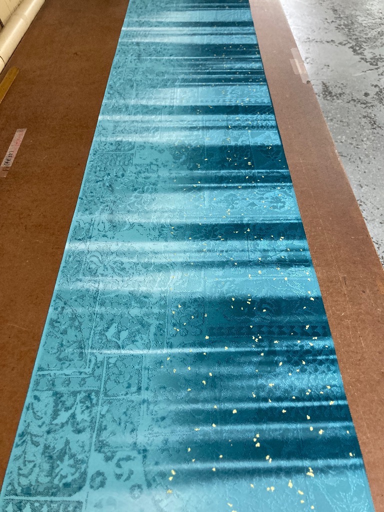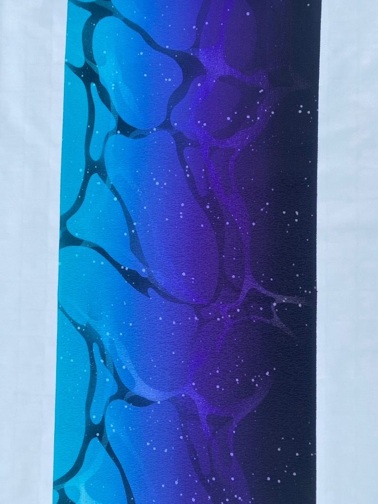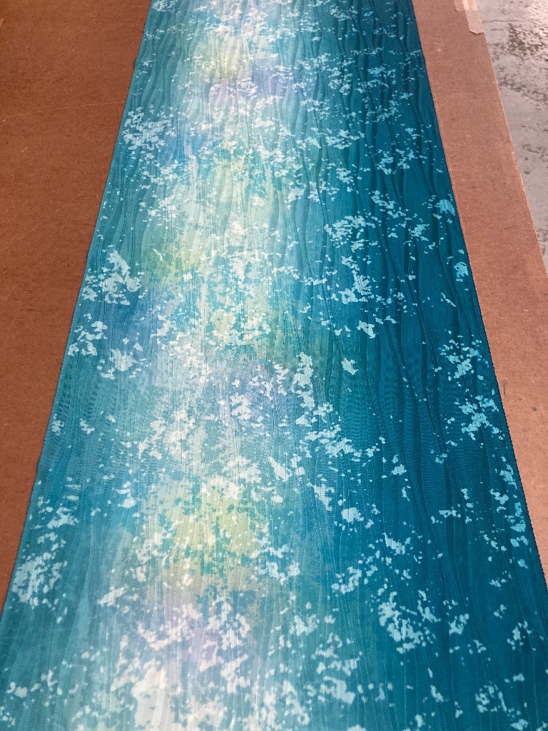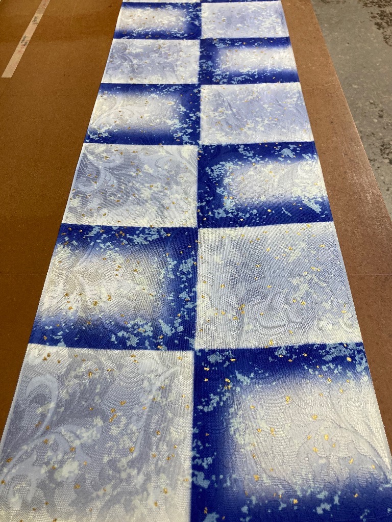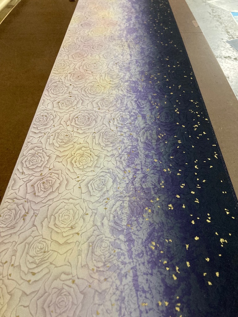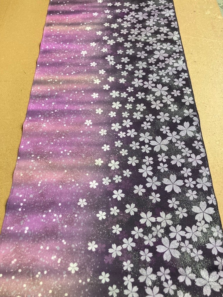 水面をイメージした染帯です。夜の水面に星空が映り込むイメージで作りました。